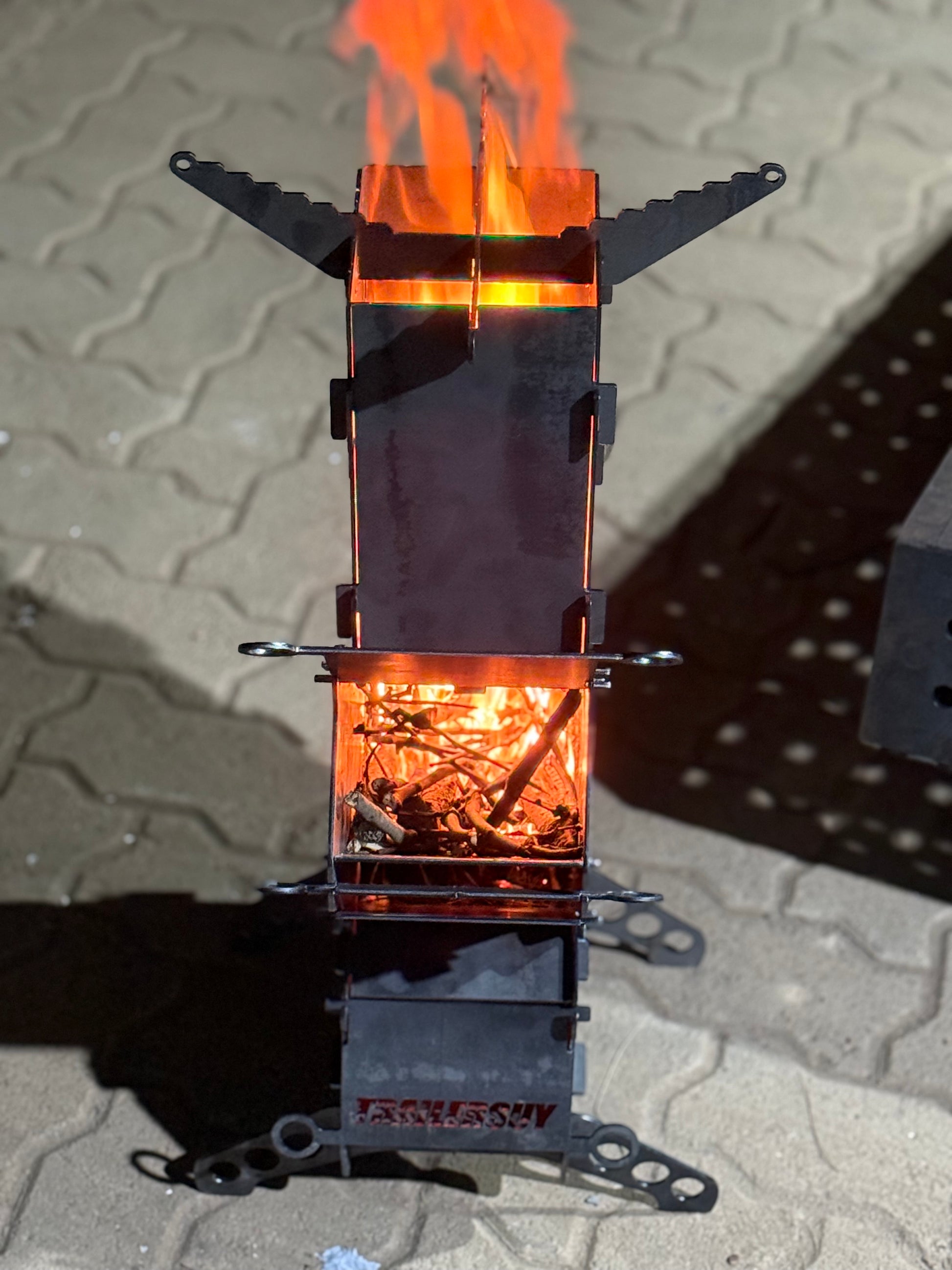 La Cocina Rocket Portátil es tu compañera ideal para cualquier aventura al aire libre. Diseñada para quienes valoran la eficiencia, la calidez y la buena comida en cualquier entorno, esta cocina multifunción combina potencia, portabilidad y practicidad como ninguna otra.