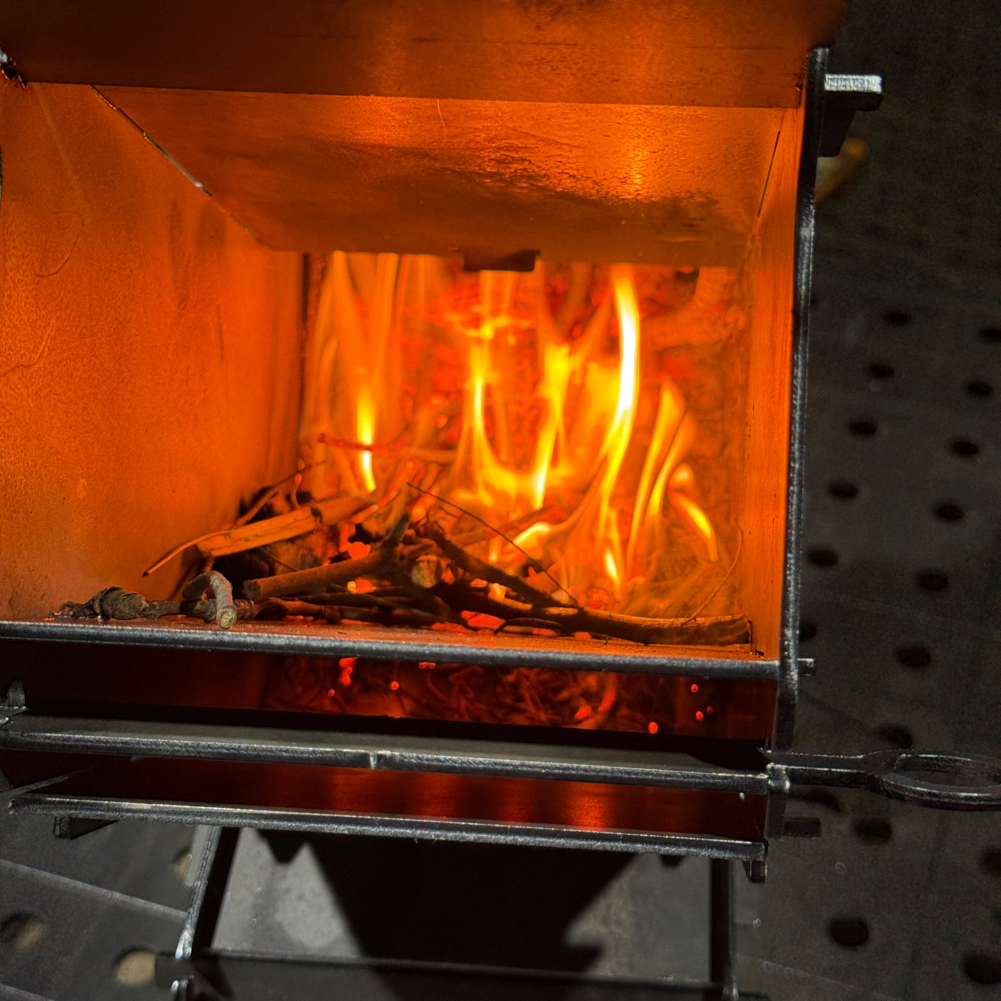 Su diseño tipo rocket maximiza la combustión usando muy poca leña o ramas. Calor intenso con menor consumo.